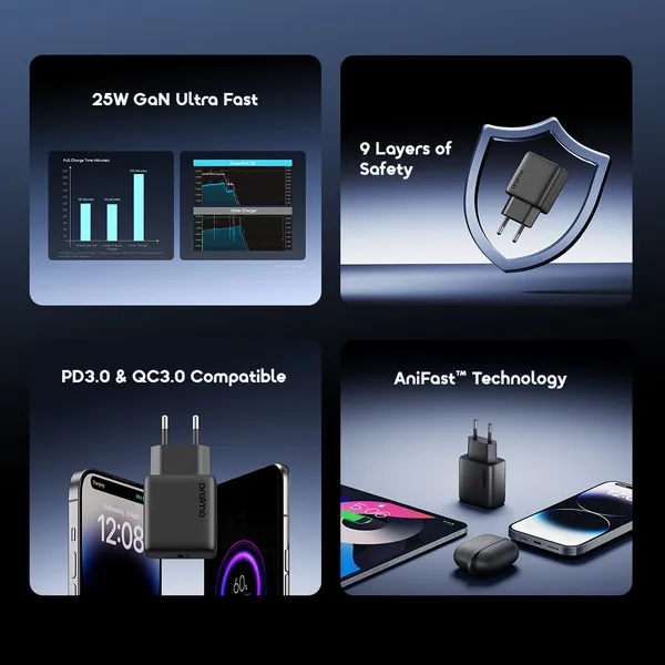 oraimo PowerGaN 251 25W GaN Fast Mini Charger Set